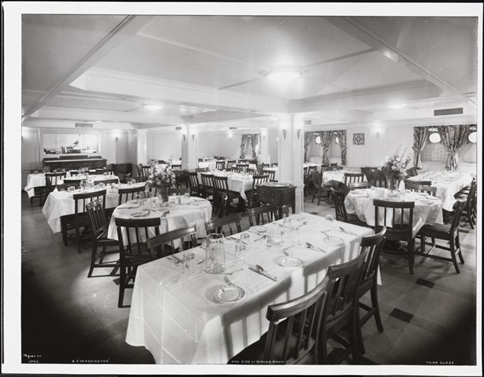[S.S. "Washington", Part of Dining Room, Tourist Class.]