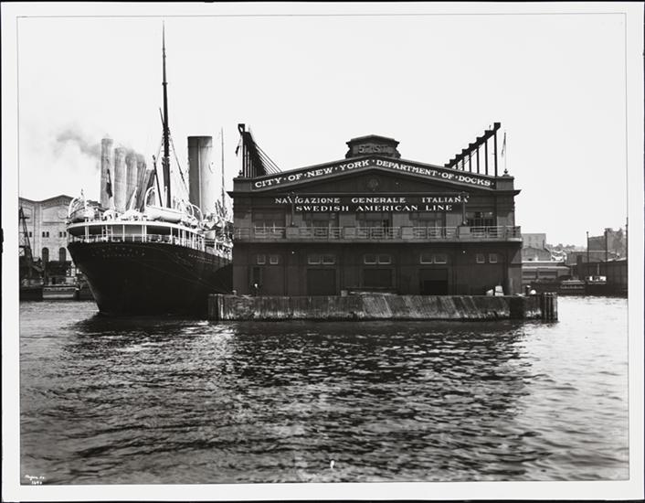 [Navigazione Generale Italiana and Swedish American Line, Pier 97.]