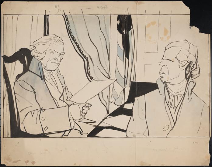 [Raymond Edward Johnson as Thomas Jefferson and Madge Evans as Patsy in the Prologue of "The Patriots".]