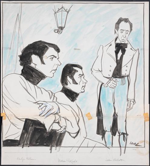 [William Griffis as Frank Harris, Ken Boyer as Lord Alfred Douglass and Thayer David in the title role of "Oscar Wilde".]