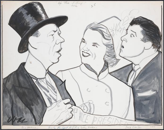 [Jack Carson as John P. Wintergreen, Lenore Lonergan as Diana Devereaux and Paul Hartman as Alexander Throttlebottom in "Of Thee I Sing".]