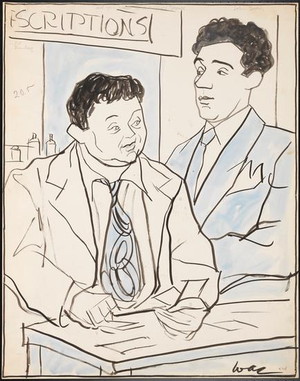 [Alexander Kirkland as Dr. Ferguson and J. Edward Bromberg as Dr. Hochberg in "Men in White".]