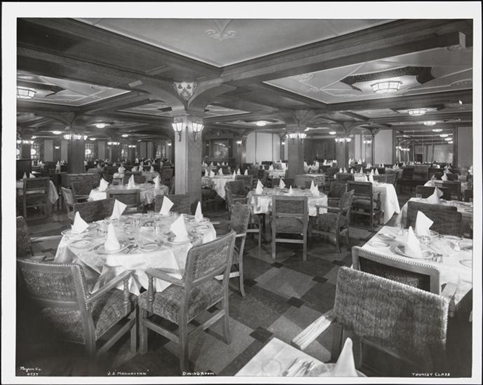 S.S. "Kosciuszko" Tourist Class, Dining Room.