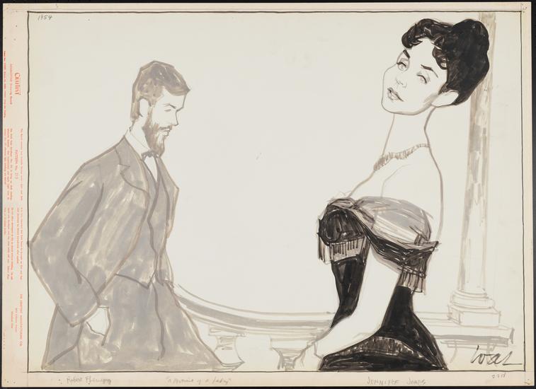 [Jennifer Jones as Isabel Archer and possibly Peter Pagan as Lord Warburton in "Portrait of a Lady".]