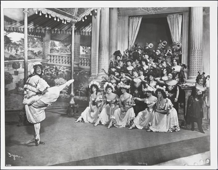 The ladies chorus in a scene from Weber & Field's burlesque "Hoity Toity" presented at the Weber & Field's Music Hall in 1902.