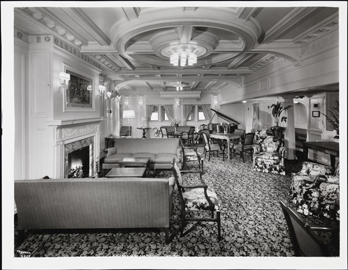 [S.S. "President Roosevelt", Lounge, Cabin Class.]