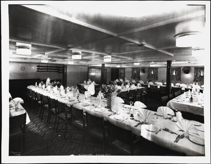 [S.S. "President Roosevelt", Dining Room, Third Class.]