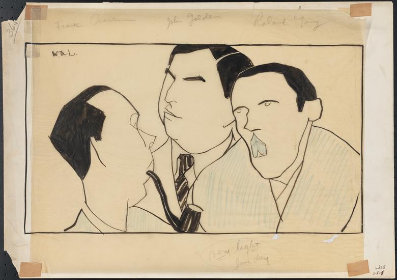 [Roland Young, Philip Ober and Margaret Lindsay in "Another Love Story".]