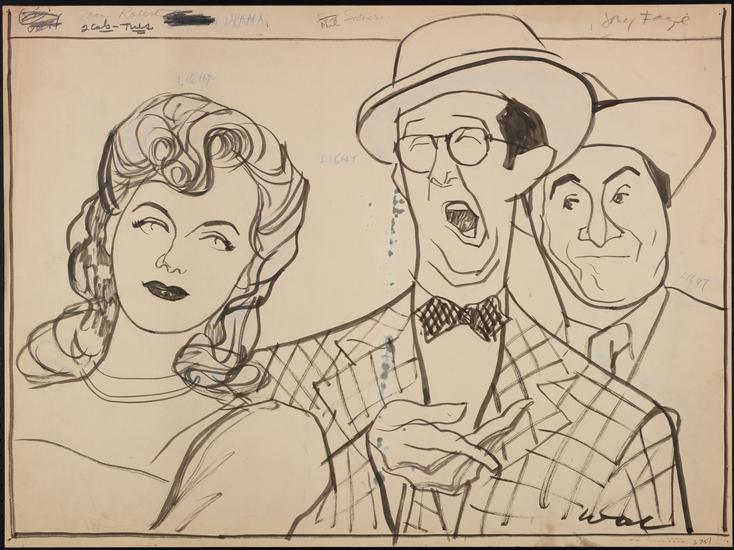 [Joey Faye as Mr. Pontdue, Phil Silvers as Harrison Floy, and Nanette Fabray as Sara Longstreet in "High Button Shoes".]