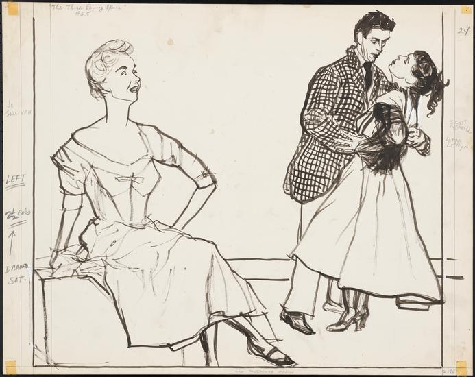 [Jo Sullivan as Julie Jordan, Bambi Linn as Louise and Chris Robinson as Billy Bigelow in "Carousel".]