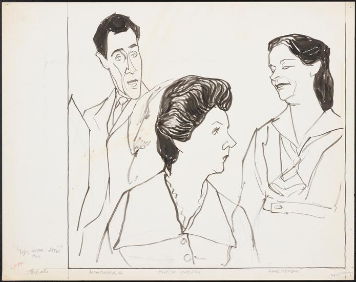 [Rochelle Oliver as Lily Berniers, Percy Rodrigues as Henry Simpson and Irene Worth as Albertine Prine in "Toys in the Attic".]