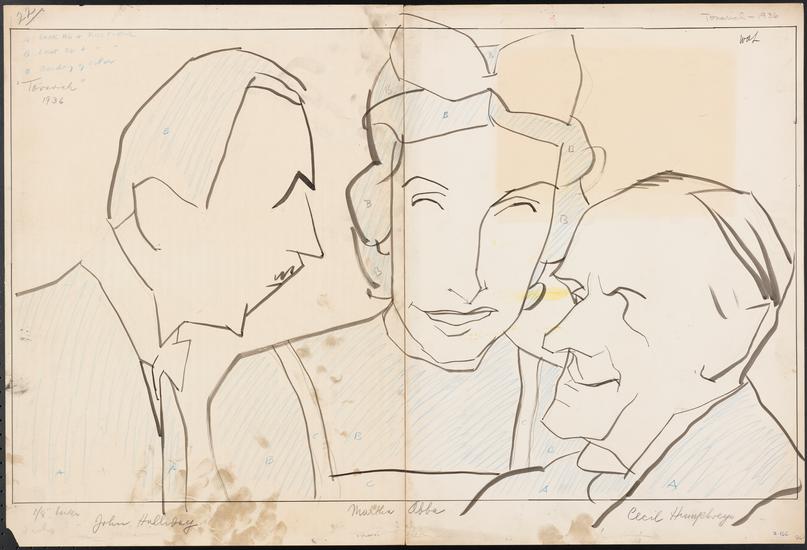 [Cecil Humphreys as Commissar Gorotchenko, John Halliday as Prince Mikail Alexandrovitch and Marta Abba as Grand Duchess Tatiana Petrovna in "Tovarich".]