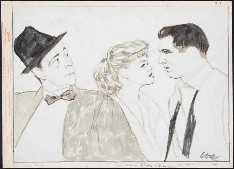 [John Raitt as Sid Sorokin, Janis Paige as Babe Williams and Eddie Foy, Jr. as Hines in "The Pajama Game".]