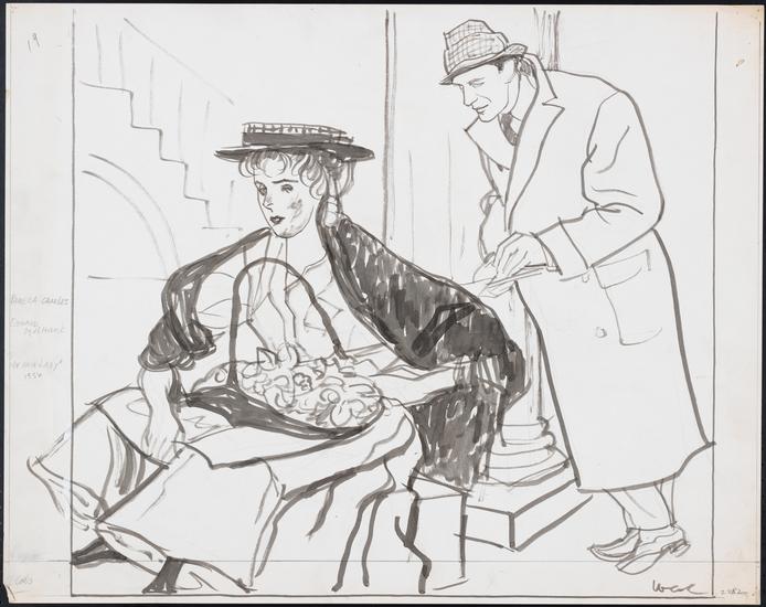 [Edward Mulhare as Henry Higgins and Pamela Charles as Eliza Doolittle in "My Fair Lady".]
