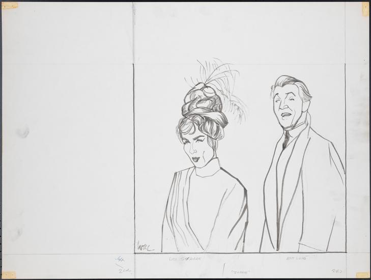 [Sydney Chaplin as Nick Arnstein and Barbara Streisand as Fanny Brice in "Funny Girl".]
