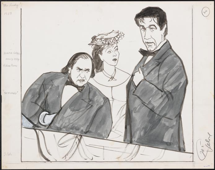 [Wendy Hiller as Josie Hogan, Cyril Cusack as Phil Hogan and Franchot Tone as James Tyrone, Jr. in "A Moon for the Misbegotten".]