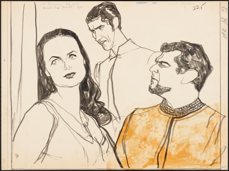 [Olivia de Havilland as Juliet, Evelyn Varden as Nurse to Juliet and Jack Hawkins as Mercutio in "Romeo and Juliet".]