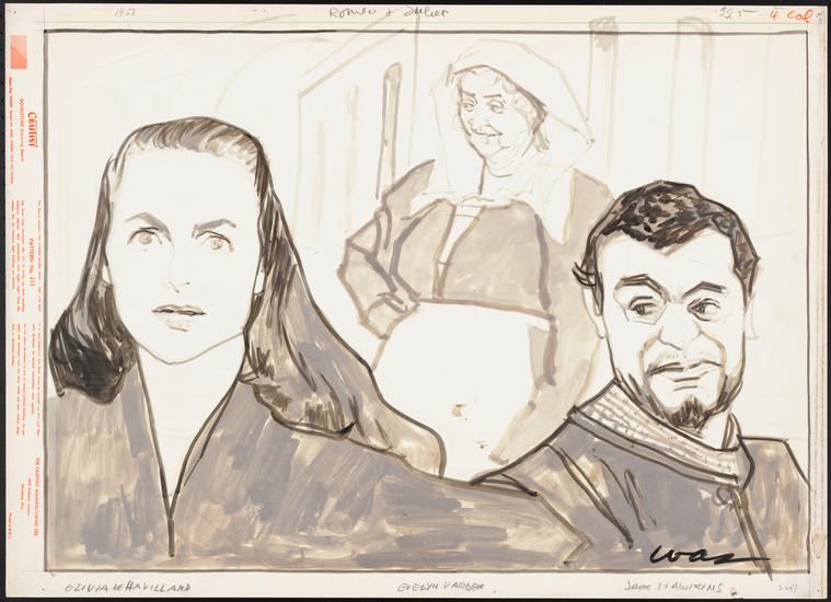 [Olivia de Havilland as Juliet, Douglas Watson as Romeo and Jack Hawkins as Mercutio in "Romeo and Juliet".]