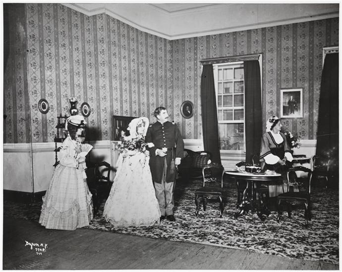 A scene from the romantic drama by Cylde Fitch, "Barbara Frietchie," produced by Charles Frohman at the Criterion Theatre, New York, in 1899, featuring Julia Marlowe as Barbara Frietchie.