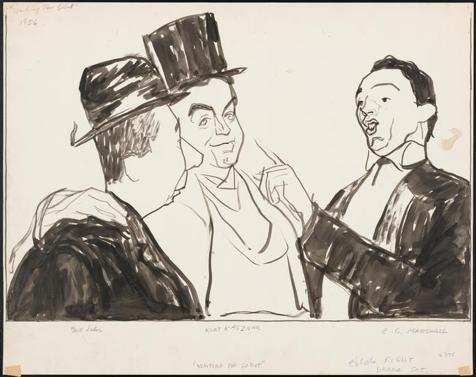 ["Waiting for Godot" theater still.]