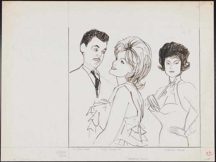 [George Gaynes as Robert Baker, Rosalind Russell as Ruth Sherwood and Edith Adams as Eileen Sherwood in "Wonderful Town".]