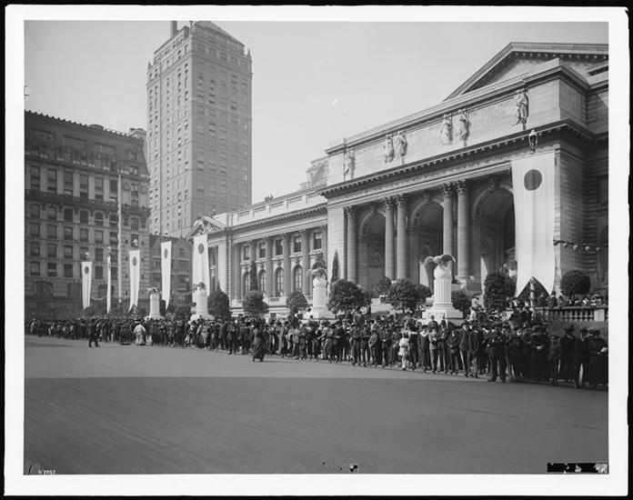 5th Avenue and 42nd Street. New York Public Library, general view. [Italian War Commission, June 1917.]