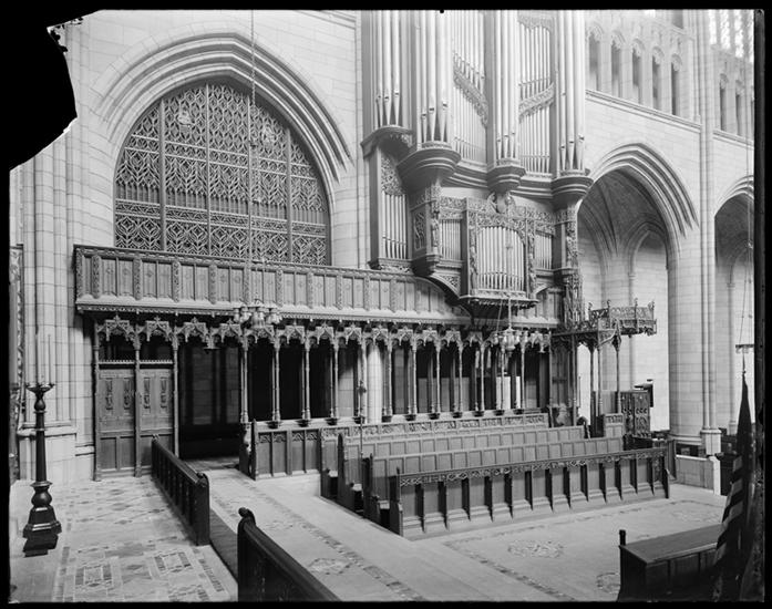 5th Avenue at the corner of West 53rd Street. St. Thomas Church, carved screen and side, interior.