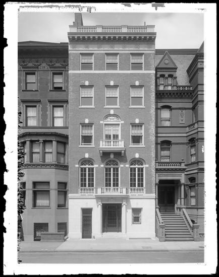 6 East 69th Street. Exterior of the residence of Mrs. Wm. K. Laughlin, Dallas Pratt's sister.