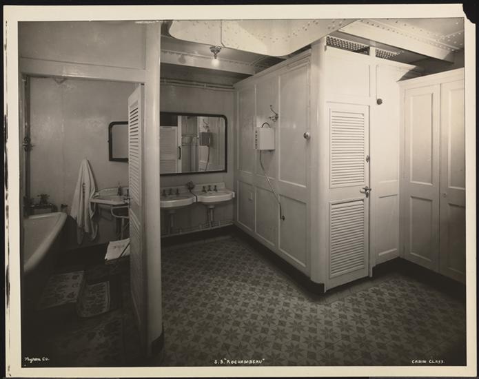 French Line, S.S. "Rochambeau", Cabin Class Interior, 3 Berth Stateroom #185.