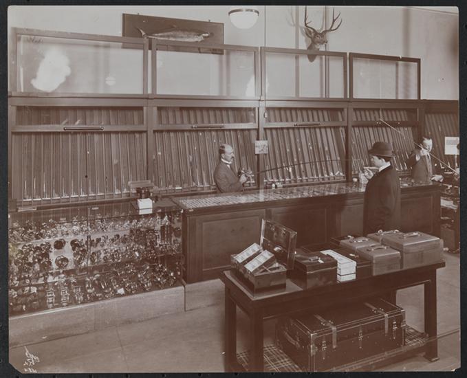 Abercrombie & Fitch Co., Sporting Goods, Interiors of Salesroom with Customers.