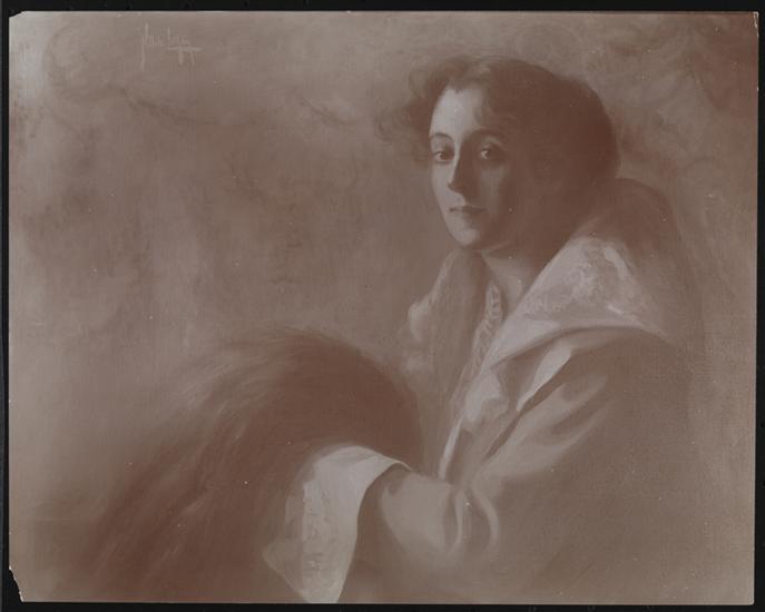 Photograph of a portrait painting of a woman; Signed "N. Dale Latham."