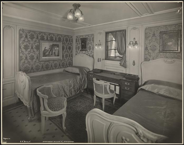 Italia-America Shipping Corp., S.S. "Duilio", Interior, First Class, Apt. de Luxe B., Stateroom.