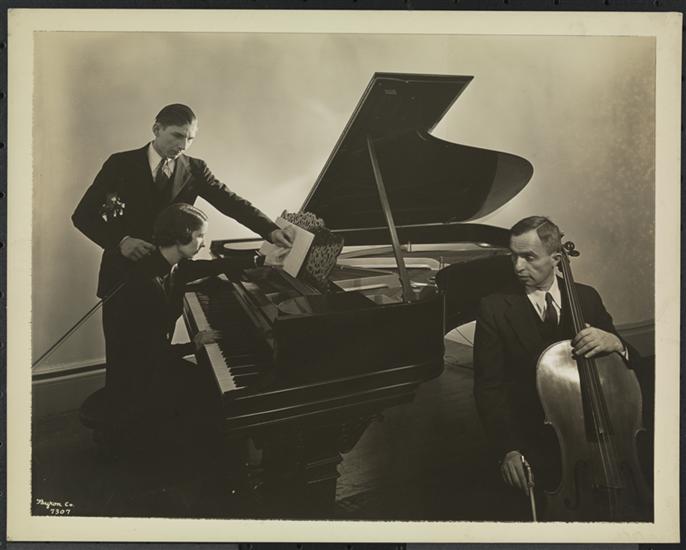New York Association for the Blind, Group of Three, Blind Teacher and Boy and Girl Playing Piano.