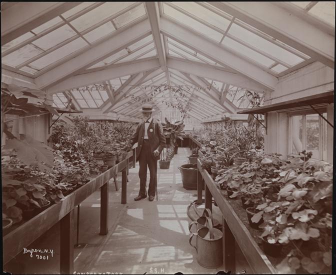 A man inside the conservatory at Sailor's Snug Harbor, a facility and home for retired sailors on Staten Island, New York.