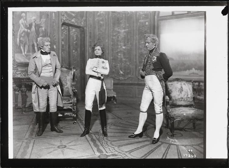 A scene in Act II of Charles Frohman's production of "L'Aiglon" by Edmond Rostrand, featuring Maude Adams as the Duke of Reichstadt, J. H. Gilmour as Flambeau and Edwin Arden as Prince Metternich, presented at the Knickerbocker Theatre, New York City, 1900. The production was directed by Joseph Humphreys; costumes designed by Dazian.