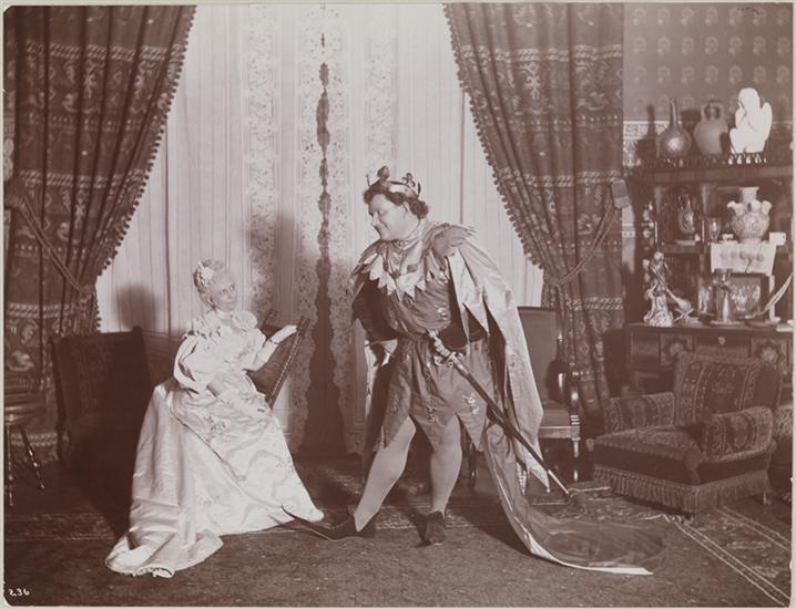 Description Costumed man and woman posed in room at the Twelfth Night Masquerade at the Stevens Residence at Castle Point in Hoboken, New Jersey.