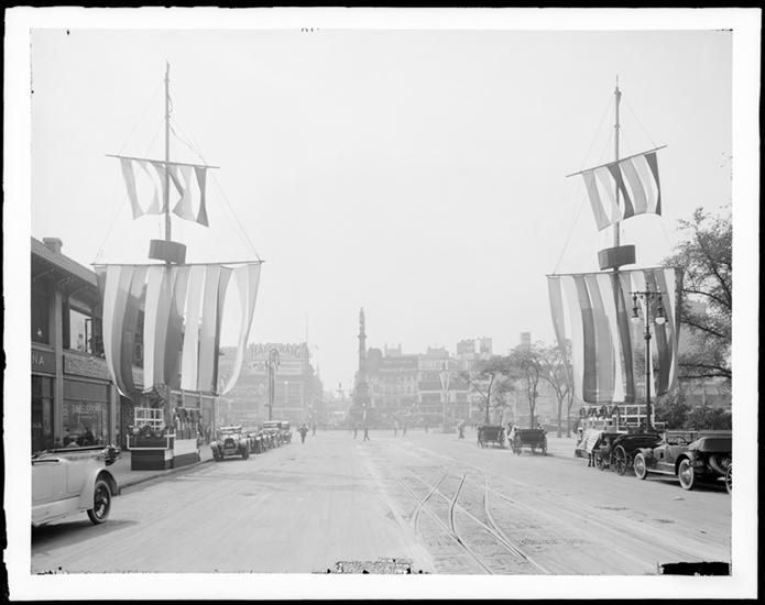 59th Street and Broadway. Columbus Circle, detail of Columbus Monument. [Italian War Commission, June 1917.]