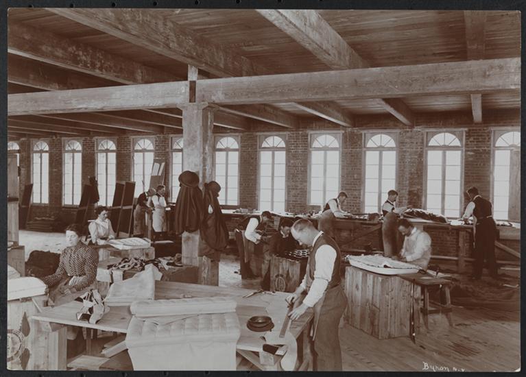 Description Upholstery shop at the Mobile automoblie factory at Kingsland Point, Hudson River (near Tarrytown, NY).