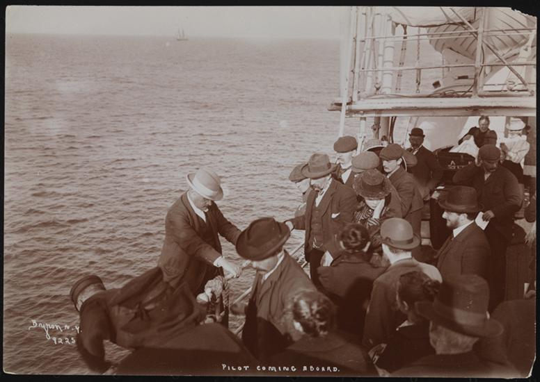 Pilot from another boat coming aboard the S.S. "Ethiopia".