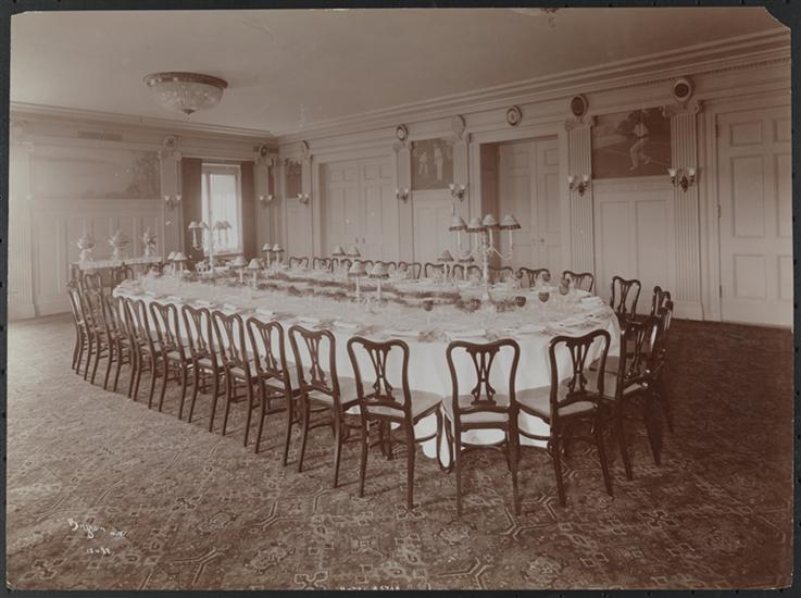 Inscription / technical details "Hotel Astor" on neg. | "A banquet table in 'College Room' Hotel Astor" pencilled on verso of duplicate print.