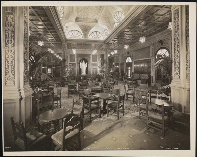 Italia-America Shipping Corp., S.S. "Roma", Pier 97 North River, Interior, First Class, Lounge, Looking Forward.