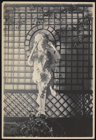 Interior at Sherry's with a statue and trellis-work at the James Hazen Hyde Ball, January 31, 1905.