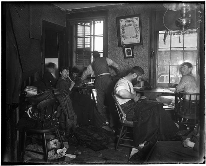 Lodgers in a crowded Bayard Street tenement - "Five cents a spot."