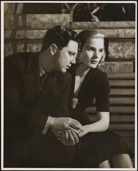 [Luther Adler as Charleston and Frances Farmer as Melanie in "Thunder Rock".]