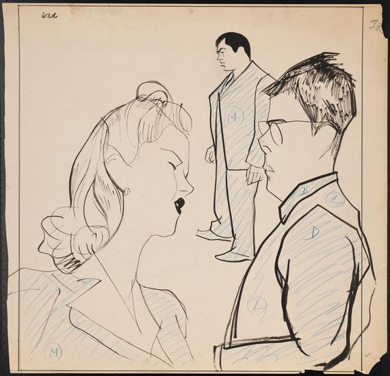 [Phyllis Ryder as Sally Middleton, Harvey Stephens as Bill Page, and Peggy French as Olive Lashbrooke in "The Voice of the Turtle".]