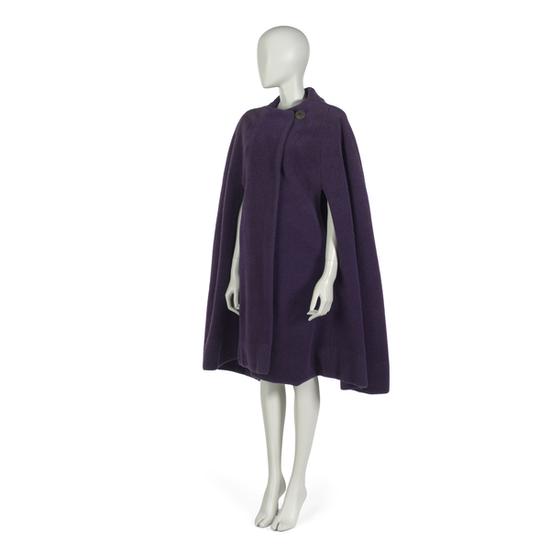 Evening dress in deep purple plisse silk chiffon resist-dyed in magenta, yellow and orange floral