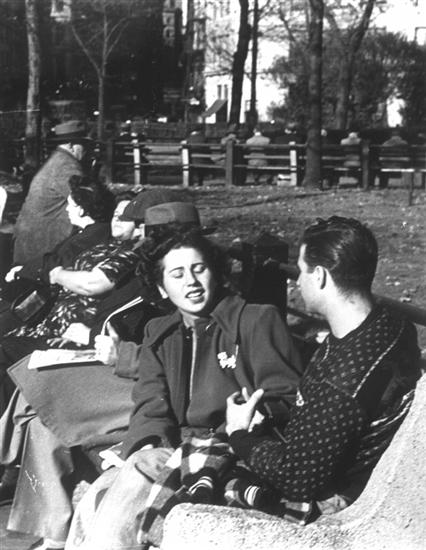 Untitled [Men sitting at and sleeping at base of flagstaff, Union Square]