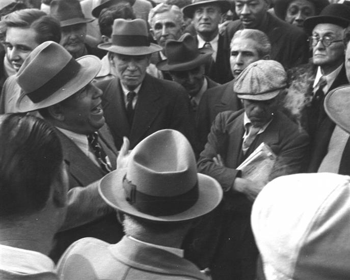 Untitled [Man with Newspaper at Political Discussion Meeting, Union Square]