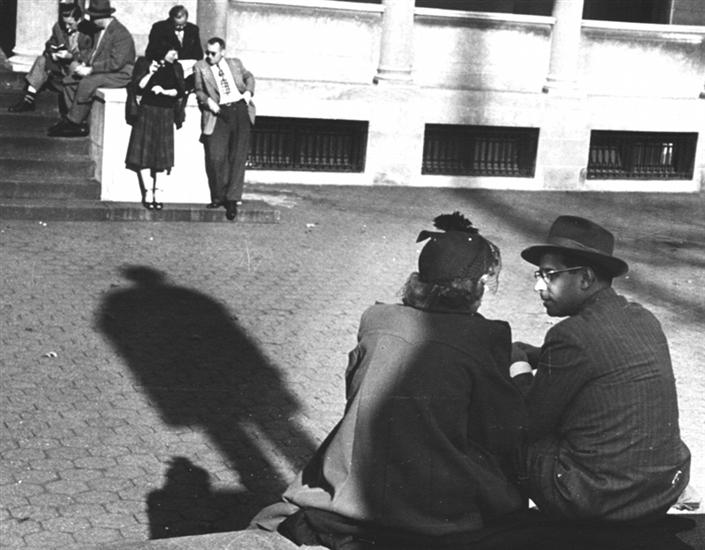 Untitled [Men sitting at base of flagstaff, Union Square]
