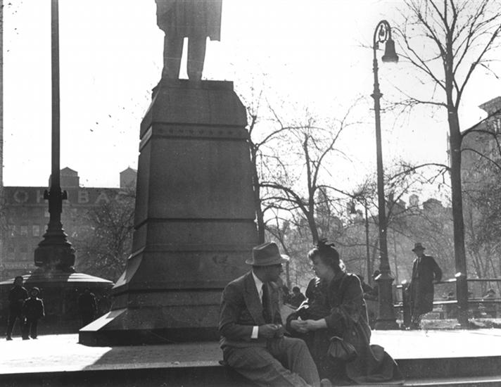 Untitled [Couple sitting at base of statue, Union Square]